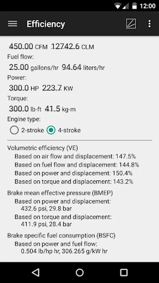 - Efficiency, BMEP, BSFC