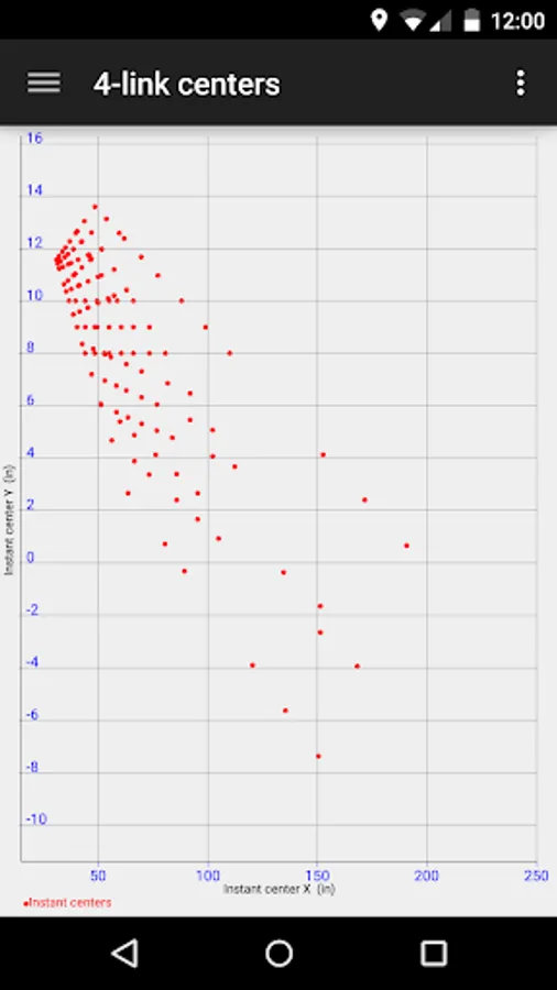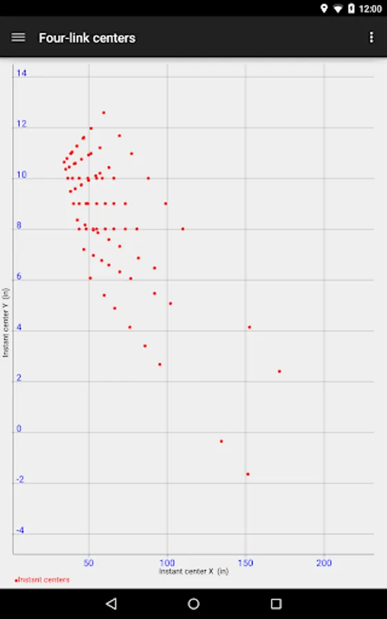 - 4-link centers: graph X and Y positions of instant centers for all combinations of holes