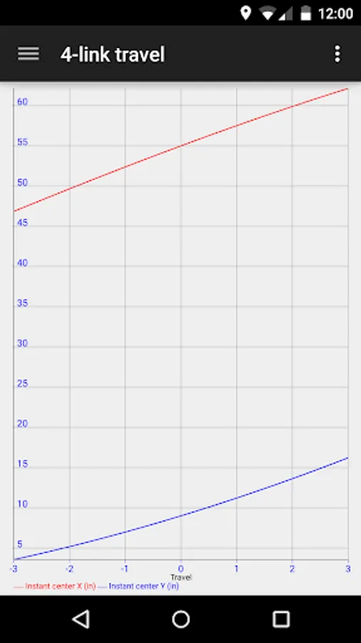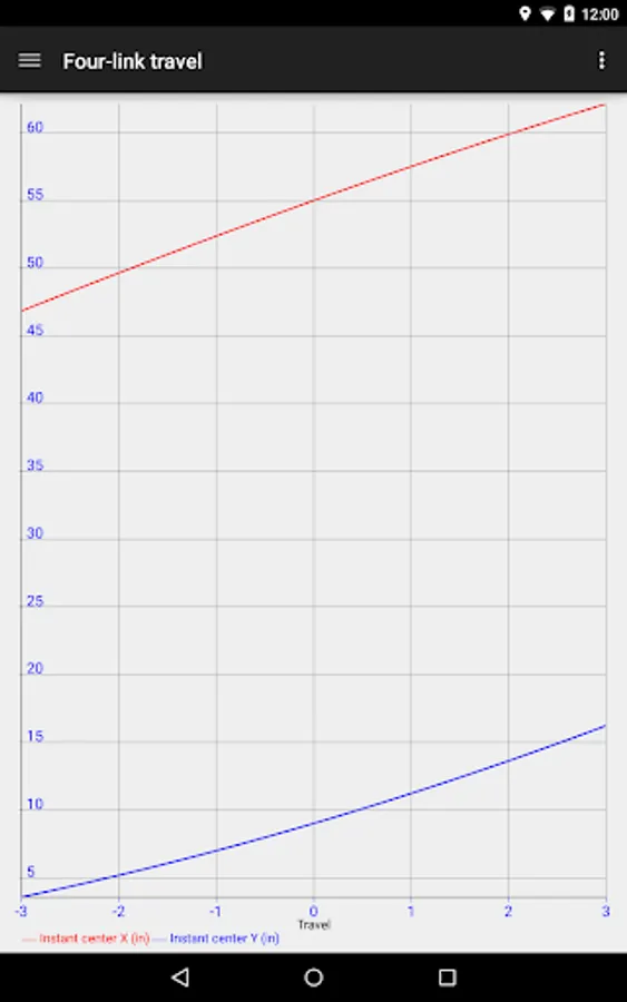 - 4-link travel: shows instant center X and Y location curves for over suspension travel