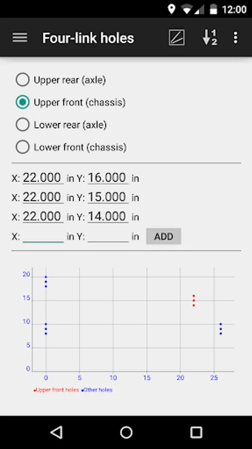 - 4-link holes: illustrates X and Y positions of all holes