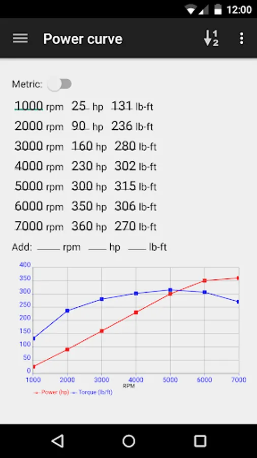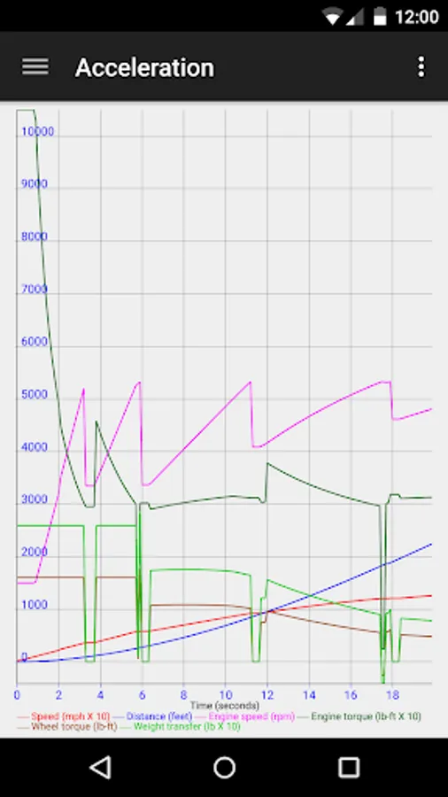 - Shift points calculated by torque peak, power curve, or any specified values and used in acceleration simulation
