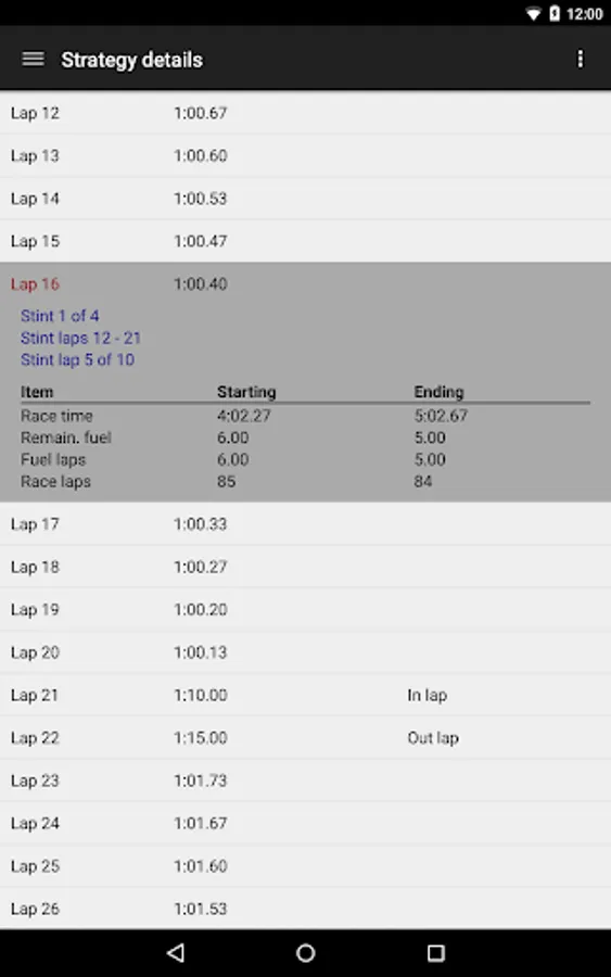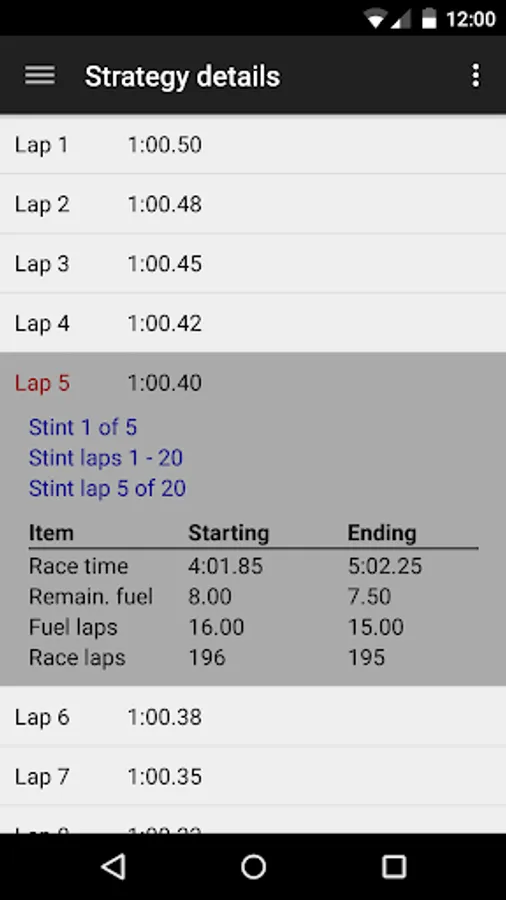 - Race strategy details with precise data for each lap