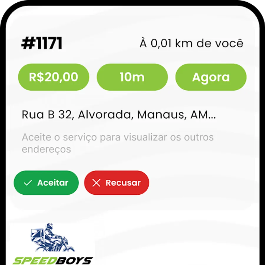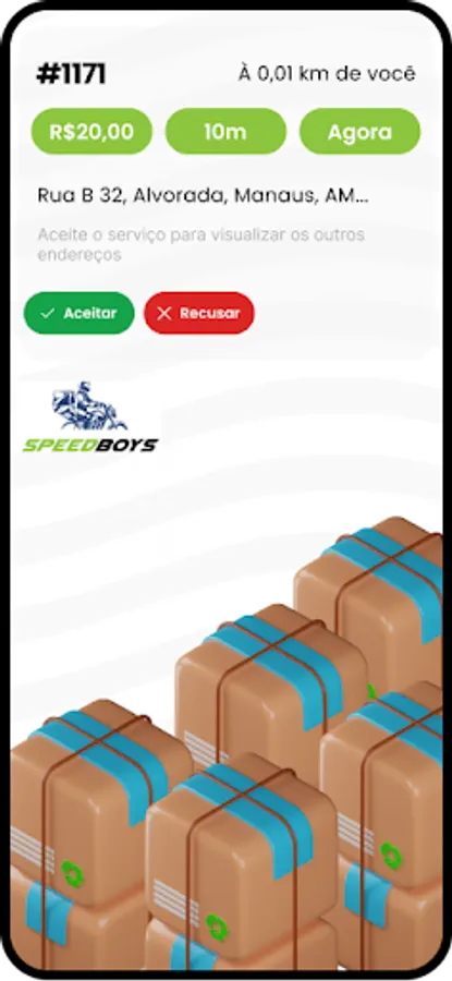 This application receives the services requested on this website: https://speedboys.com.br. Transport of objects in central regions, neighborhoods and all over Goiana - GO, Brazil. For you to receive the services you need to install the application, register, then wait for our team to activate your registration.