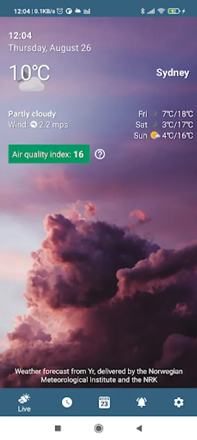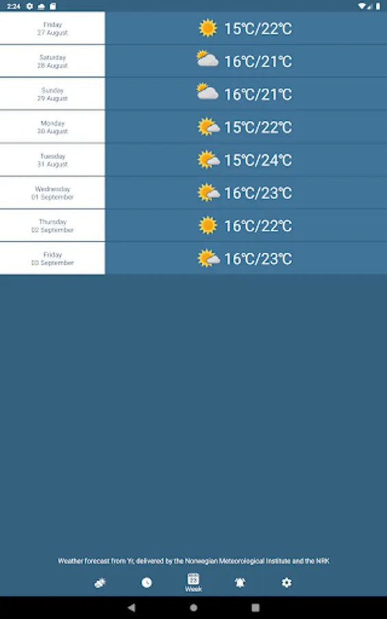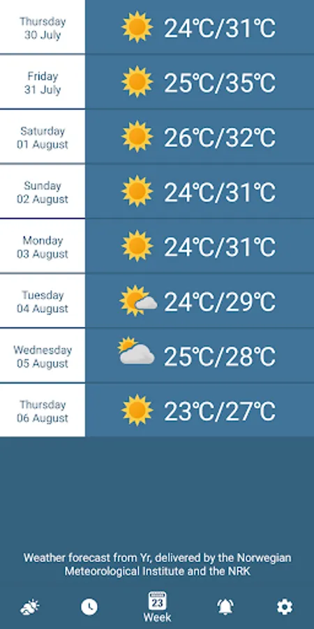 Forecasts are delivered by the Norwegian Meteorological Institute.