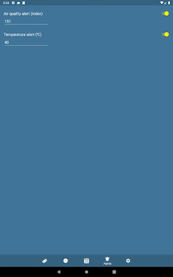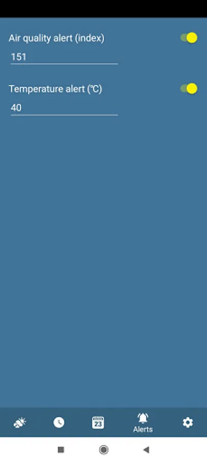 Set your temperature and air quality alert values to be alerted even when the app is in background.