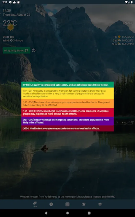 • Weather and Air Quality Alerts for your area (Temperature alert)