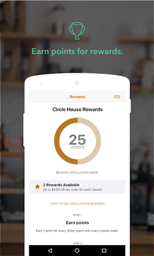 Take the Circle House experience next level with the mobile app! Order whenever you want from wherever you want. Keep it simple with pre-pay. Skip the line. Instantly earn rewards points. Redeem rewards dollars from your phone. Stay informed about new beverages and food. Best of all, be on the lookout for specials promos and pop-up happy hours.