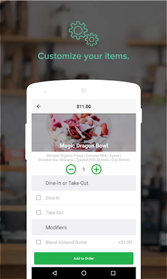 - Customize - add menu items to your order & customize as you like