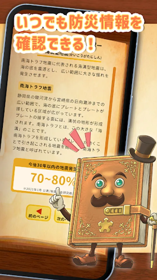 You can check your knowledge about disaster prevention at any time.