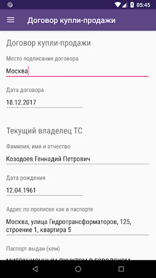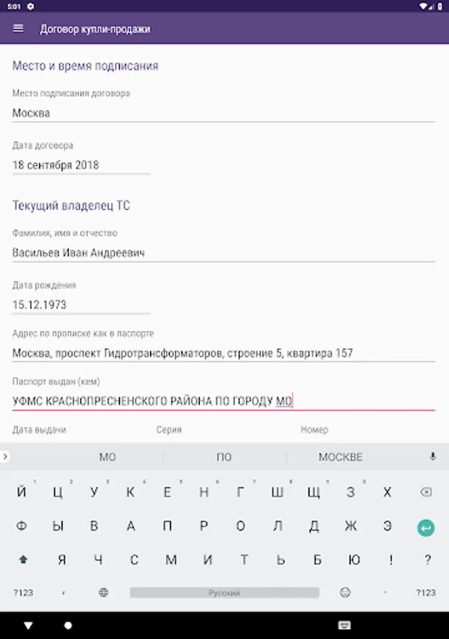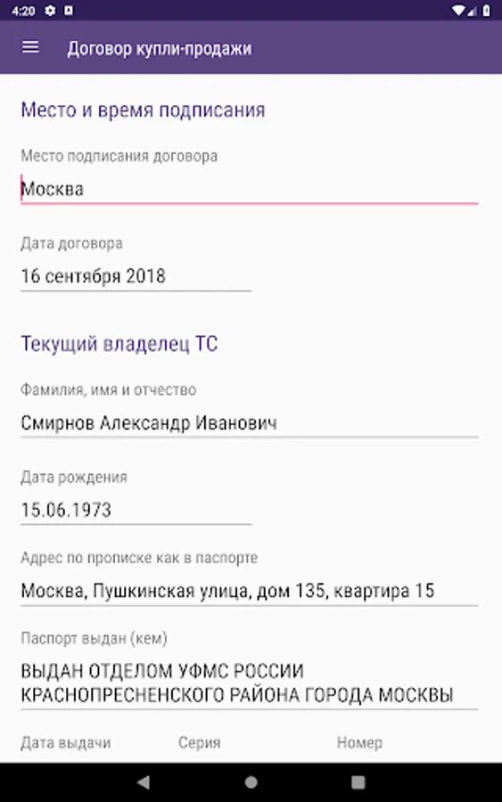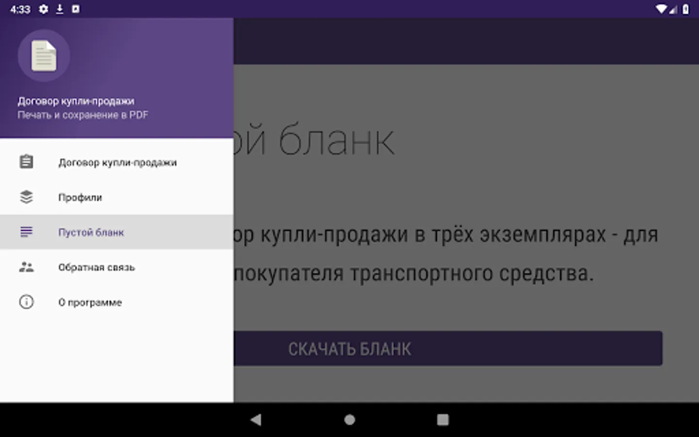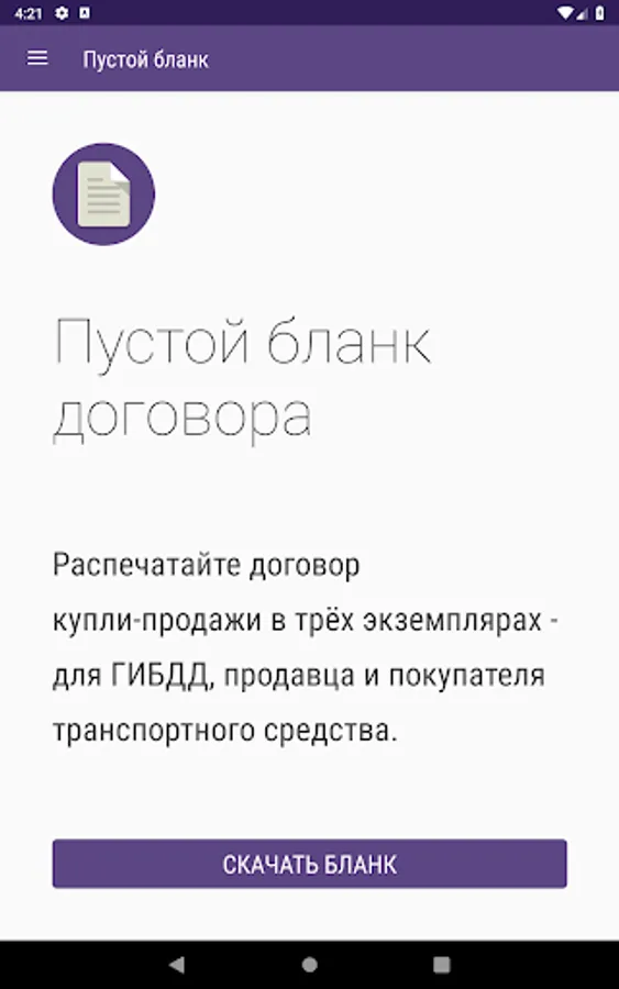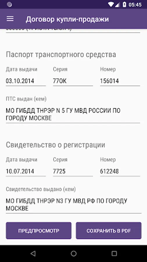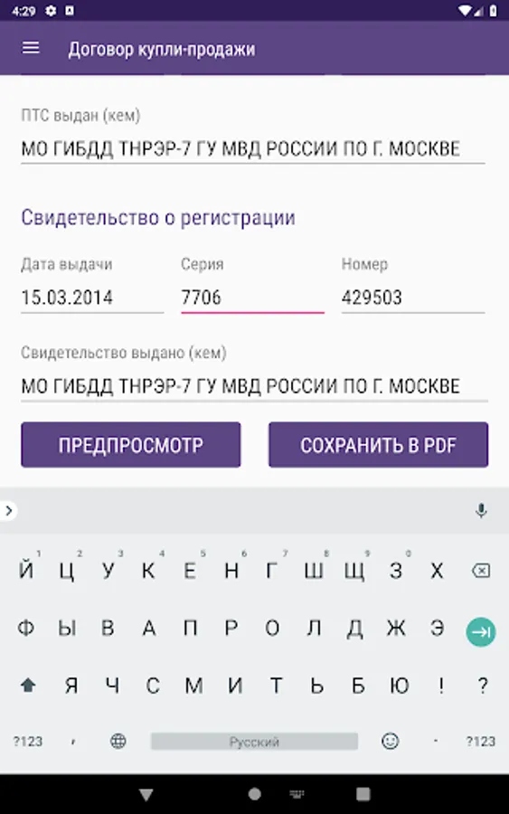 A simple and convenient ad-free application for drawing up a vehicle purchase and sale agreement and PDF export in one go.