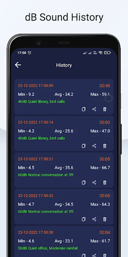 Db Sound Meter app shows decibel values by measuring the environmental sound level (noise level) & displays measured dB values in various forms. The result of the measurements is displayed in decibels on the screen of your phone.