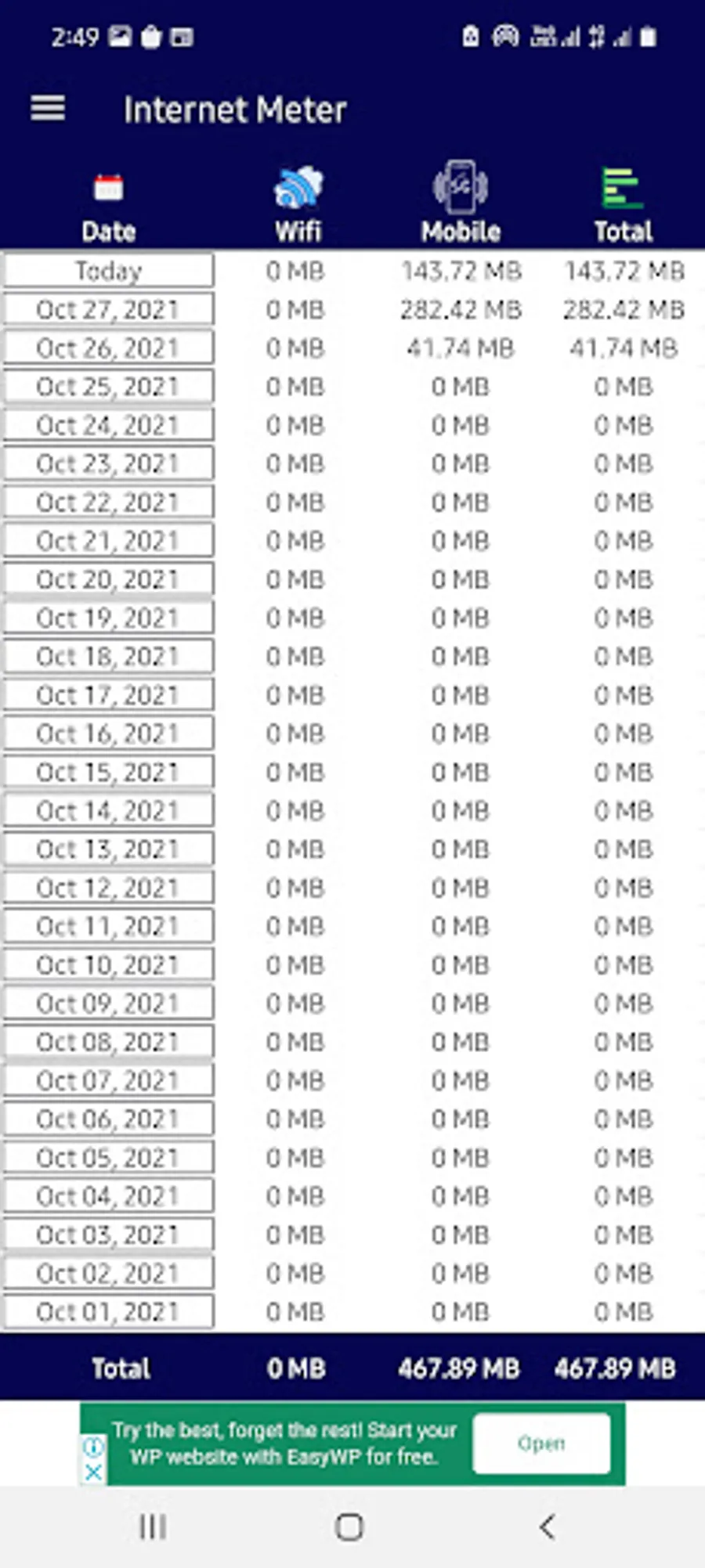 - Separate stats for Mobile network and WiFi network.