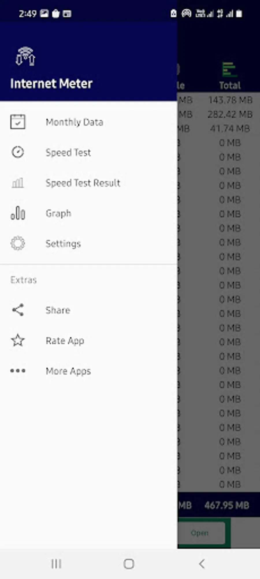 Internet Meter – Daily Usage For Android displays Speed In Notification-bar and keeps track on daily usage. It Creates Monthly Billing Cycle.To Internet Meter The Use Of Internet And Wi-Fi Daily-used Data Report And Show Date In Right-side.Internet Meter makes it easy to test your internet speed. It’s easy, fast and accurate and the test results are presented in a user-friendly way with icons explaining what the internet speed can be used for.