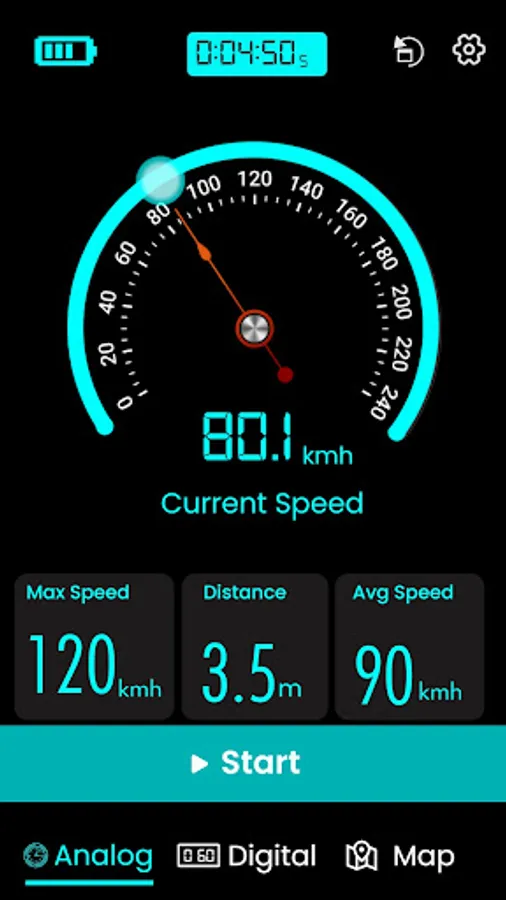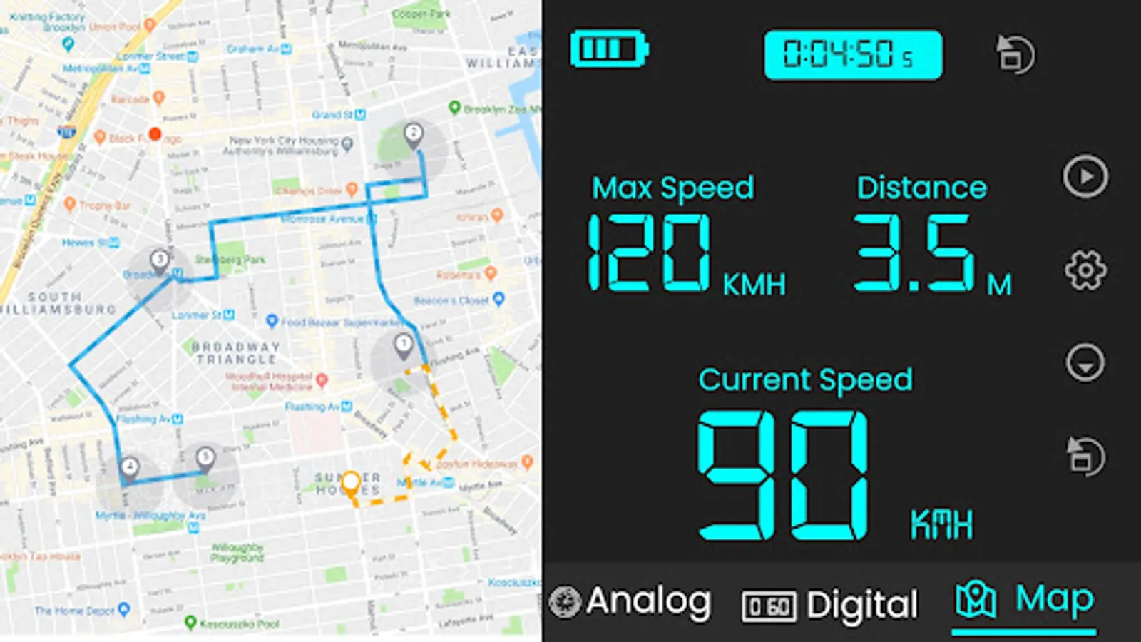 ⭐Show the mobile battery percentage GPS Speed Meter.