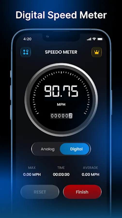- Maximum speed on the speedmeter dashboard: GPS Speedometer app will track and display your maximum speed on the dashboard during a trip.