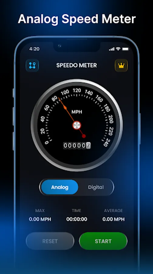 GPS speedometer and odometer app has both analog and digital speedometer to track the speed. The speed tracker of the odometer app can be useful for users who want to go a long drive with family. It functions just like the car speedometer, to track the vehicle speed.