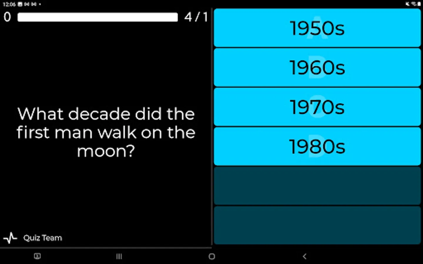 A SpeedQuizzing quiz is a quick-fire quiz game where players use their touch screen phone as a quiz buzzer / input device. By connecting over wifi, many devices can join and play this TV gameshow-style quiz game.