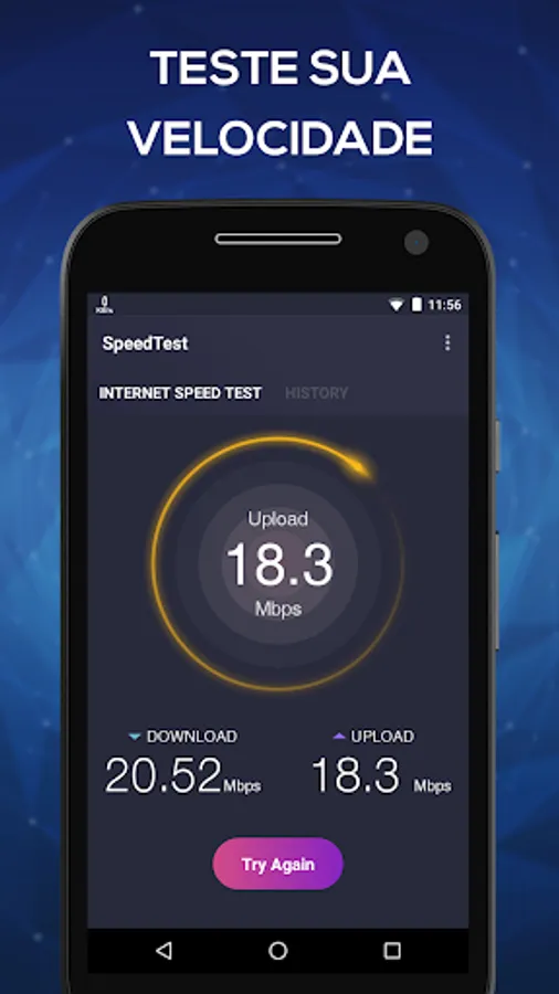 The application "Internet Speed Test App" is an Internet speed meter. You can test the speed for your mobile phone connections, including WiFi networks, LTE, 4G, 3G networks.