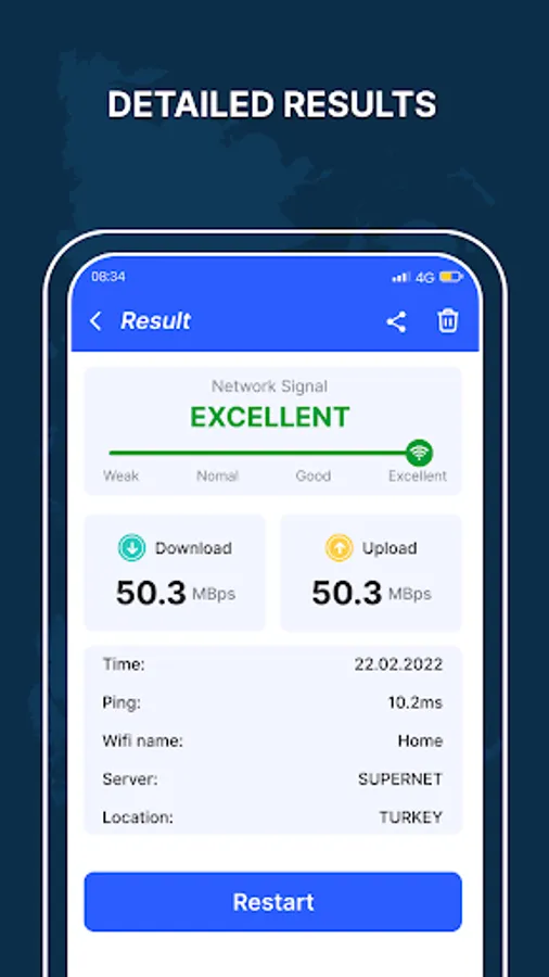 Access a detailed history of your speed test results to track your internet performance over time. Identify patterns and trends and make informed decisions to improve your internet speed. ๐