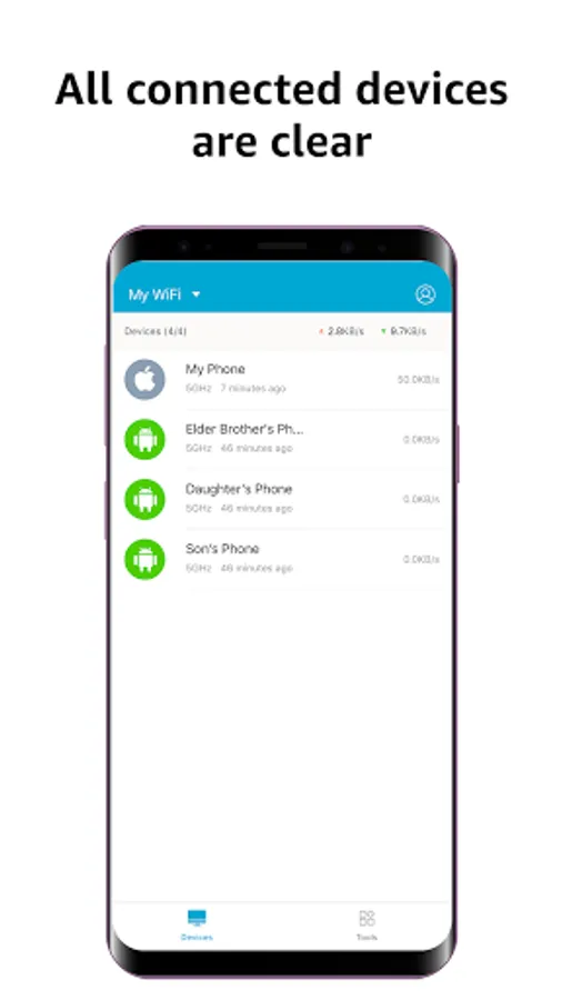 * See what devices connected to your network and their status.