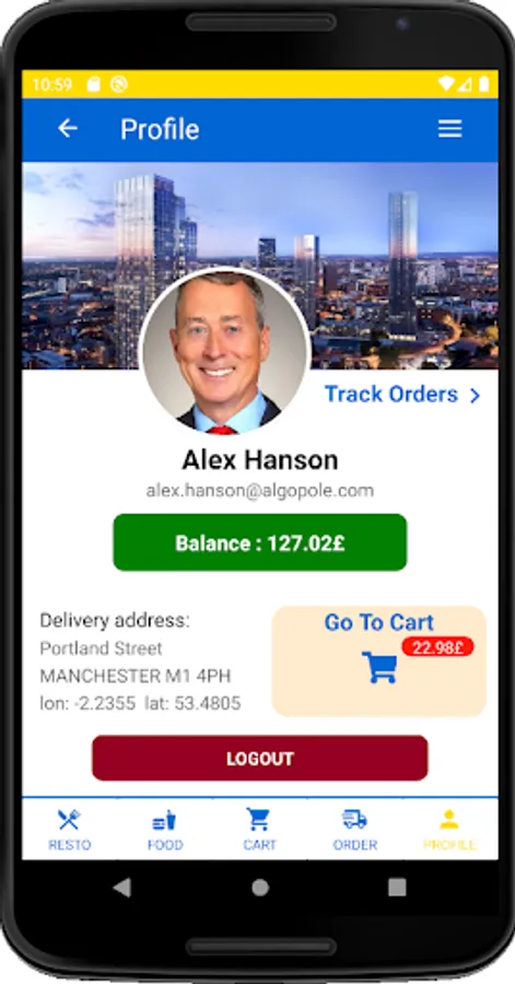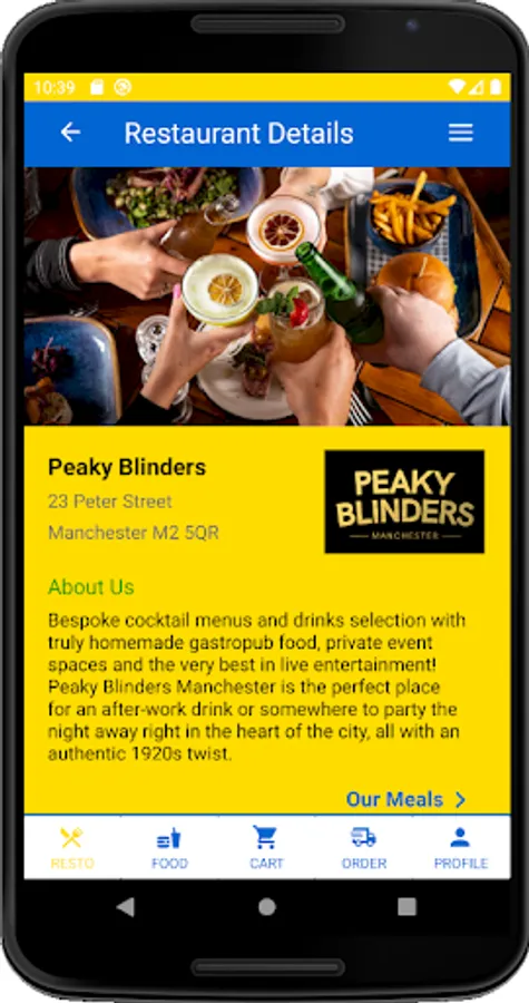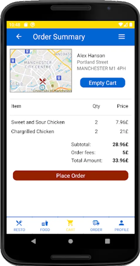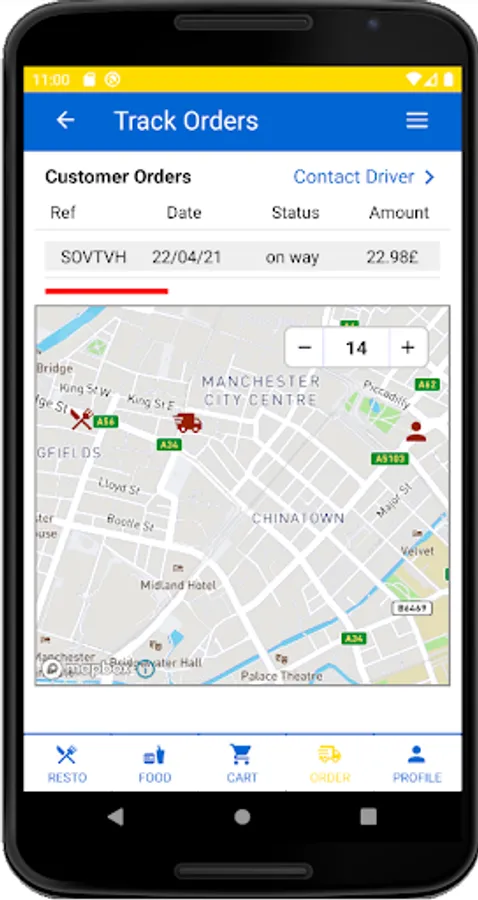 Food delivery application for Manchester. Ordering and delivering meals and lunch at home through express drivers service.
