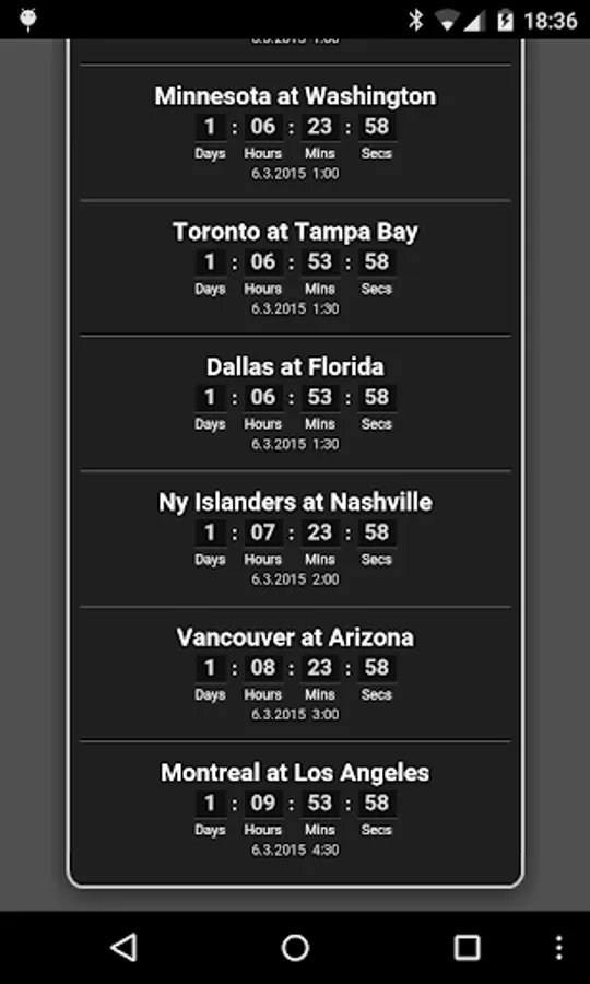 See the schedule and countdown to the upcoming und running NHL hockey games.