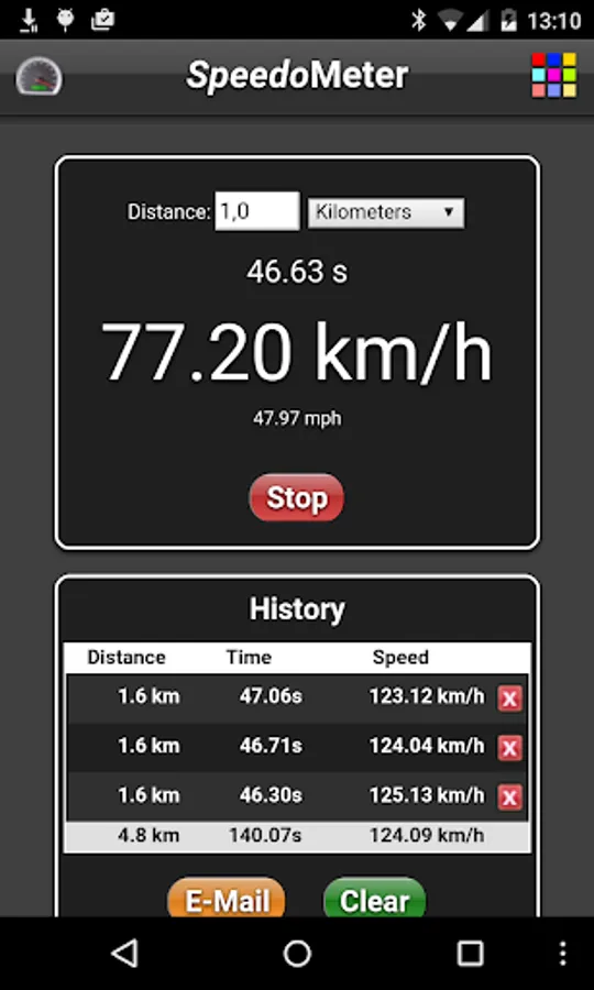 This application helps to calculate the average velocity over a given distance. Use this to measure e.g. your walking and running speed or to calibrate your car speedometer. It doesn't use GPS so it works on the tablets as well.
