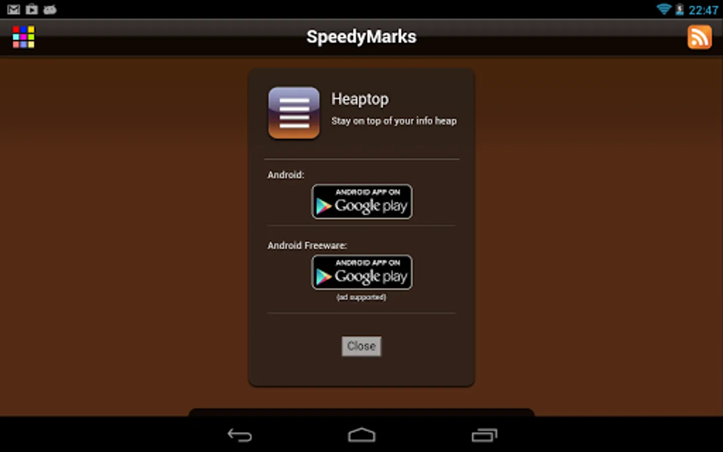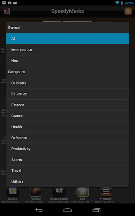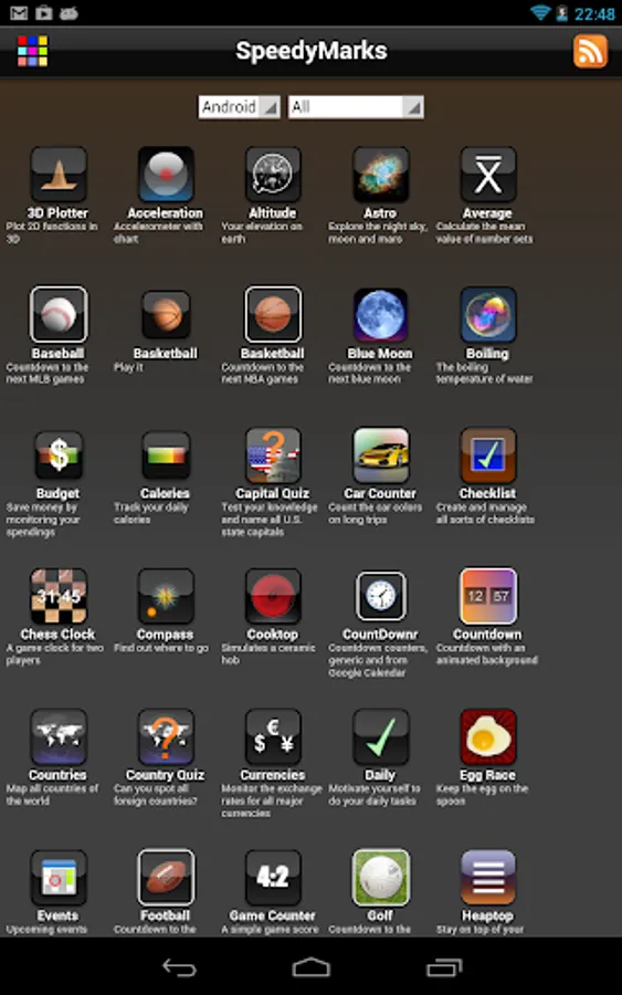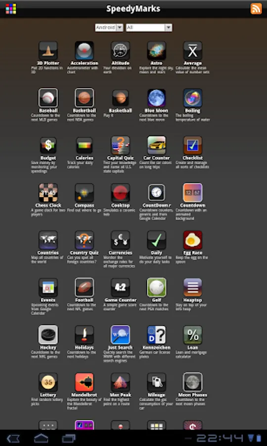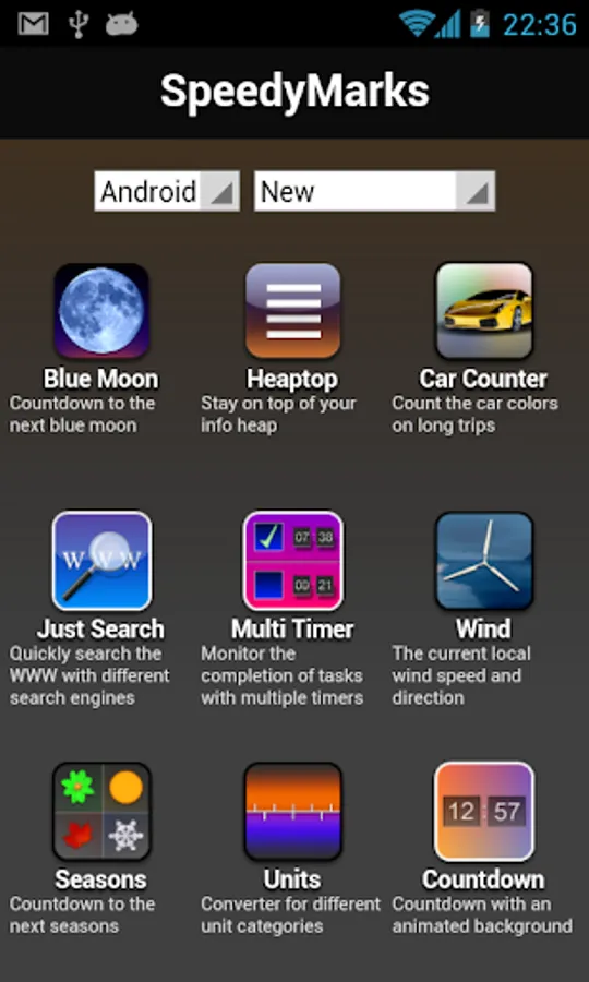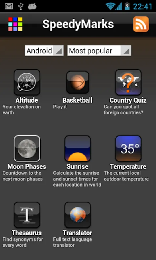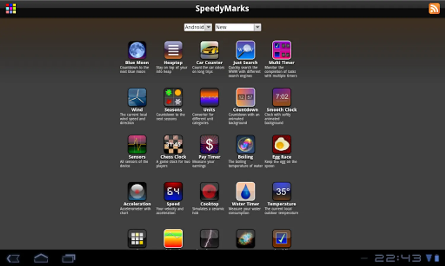 Quick access to all Android and mobile web applications from SpeedyMarks. Save space on your home screen and don't miss new releases.