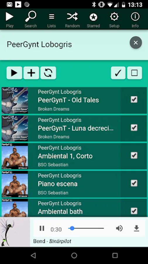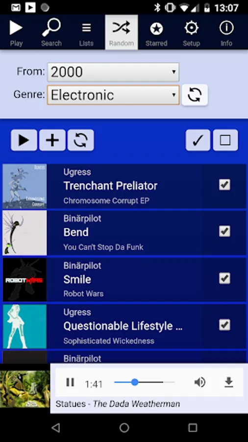 - play selected songs (shuffled or in order)