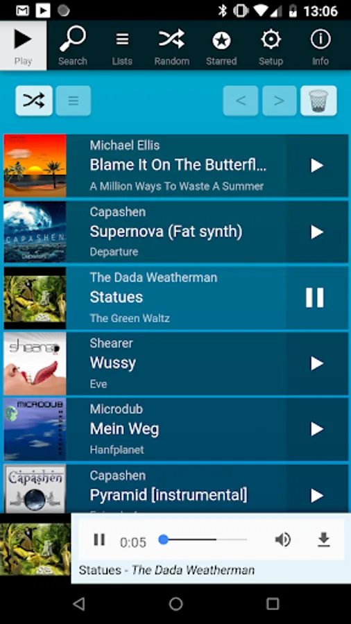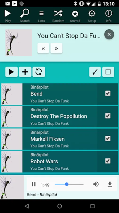 - play selected songs (shuffled or in order)