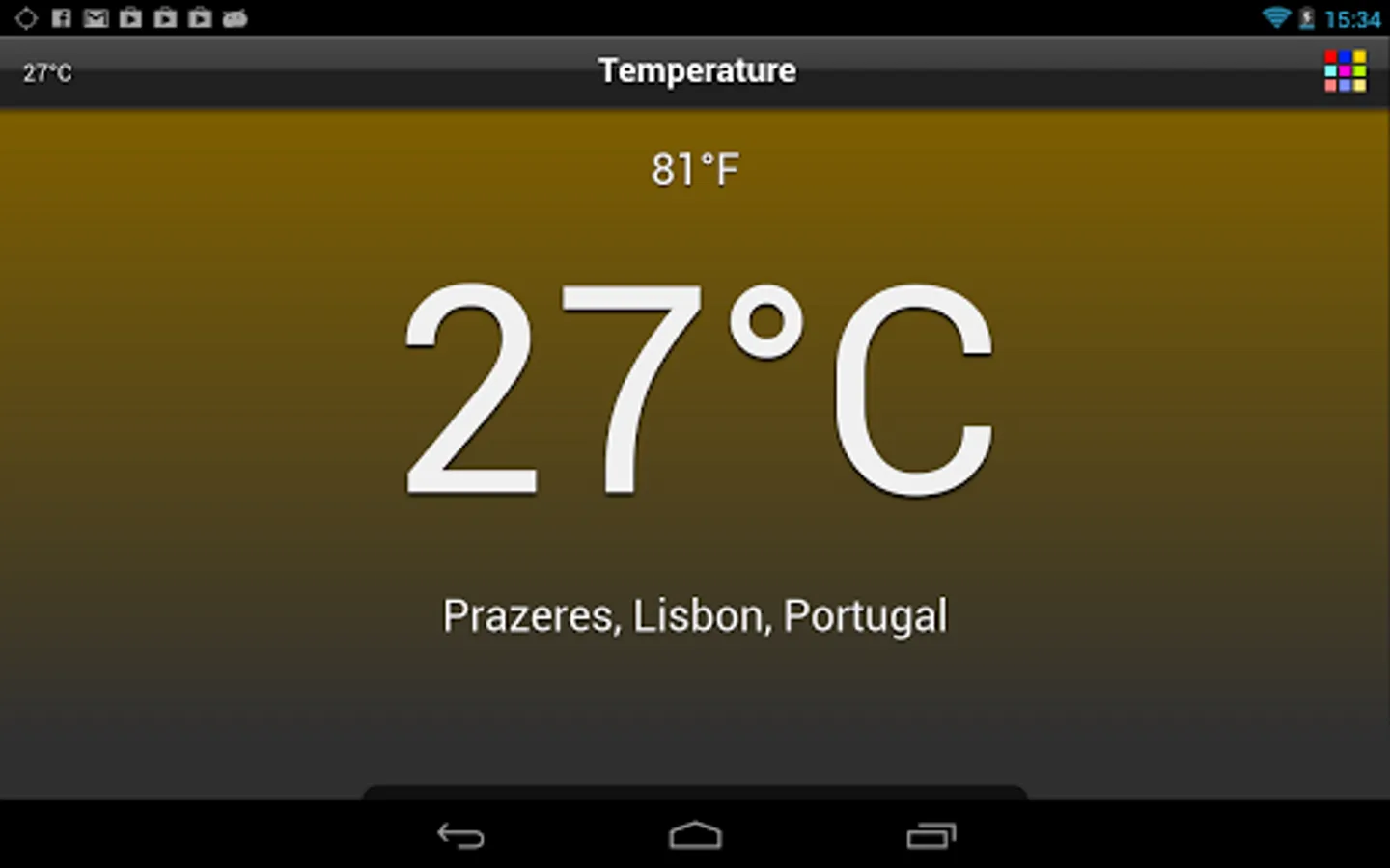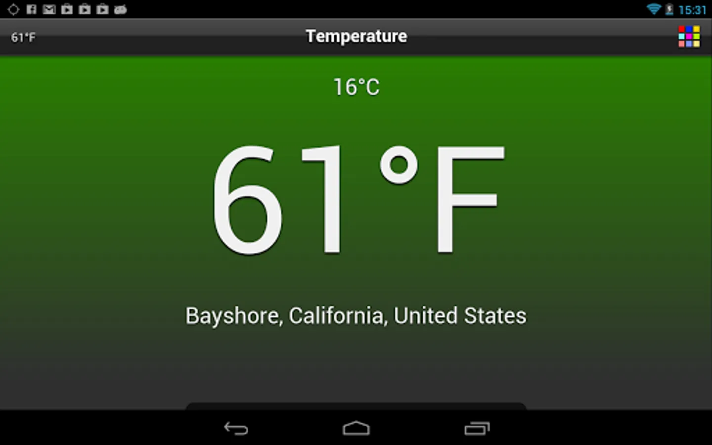 - toggle between Fahrenheit and Celsius