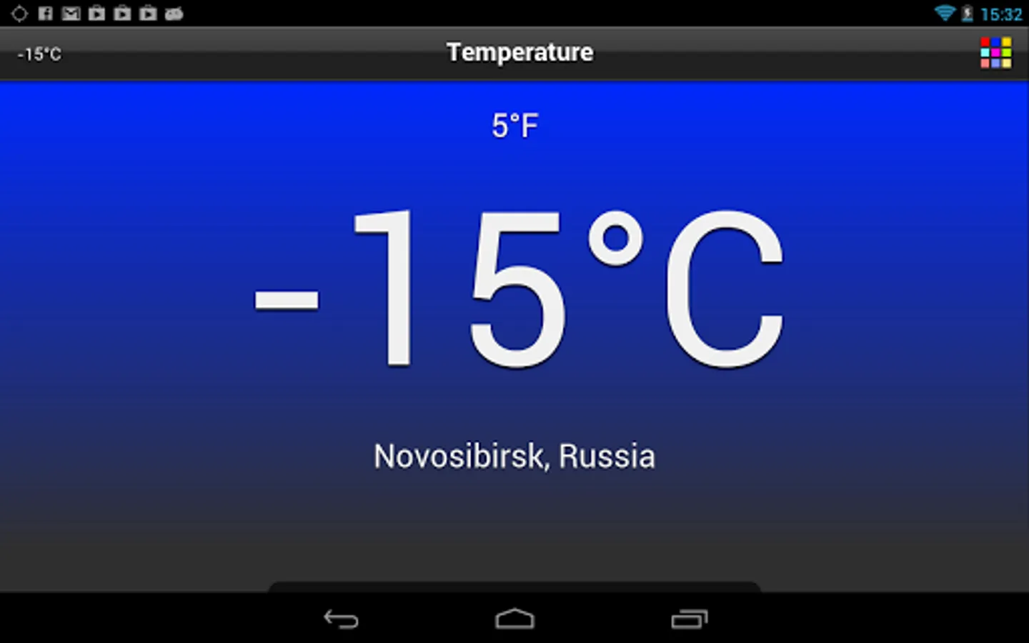 This application shows the current local outdoor temperature, measured by a nearby weather station for which it uses your current location.