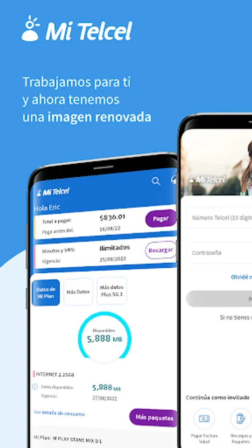The My Telcel app is the easiest way to recharge, pay, purchase packages and manage your line services without having to go to a Customer Service Center. It is available to all our clients with a compatible GMS device.