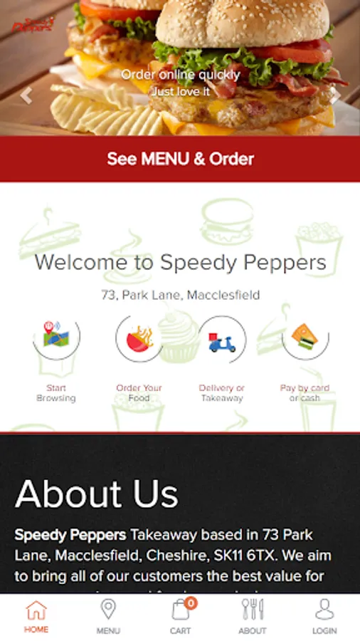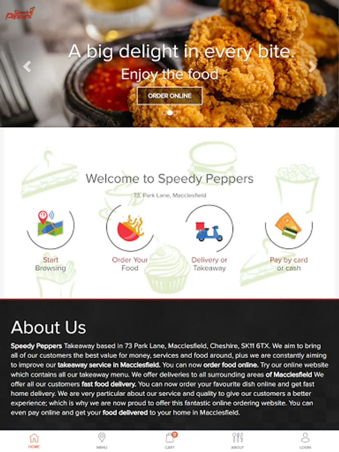 Speedy Peppers Takeaway based in 73 Park Lane, Macclesfield, SK11 6TX. We aim to bring all of our customers the best value for money, services and food around, plus we are constantly aiming to improve our takeaway service in Macclesfield. You can now order food online. Try our online website which contains all our takeaway menu. We offer deliveries to all surrounding areas of Macclesfield We offer all our customers fast food delivery. You can now order your favorite dish online and get fast home delivery. We are very particular about our service and quality to give our customers a better experience; which is why we are now proud to offer this fantastic online ordering website. You can even pay online and get your food delivered to your home in Macclesfield.