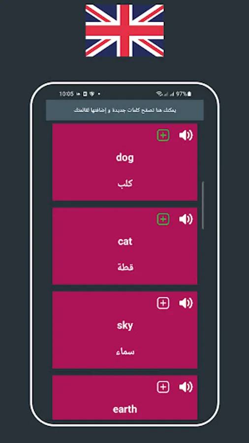 _ There is an option in which a list of general and most commonly used English words is updated online, through which you can discover new words and add them to your English word list.