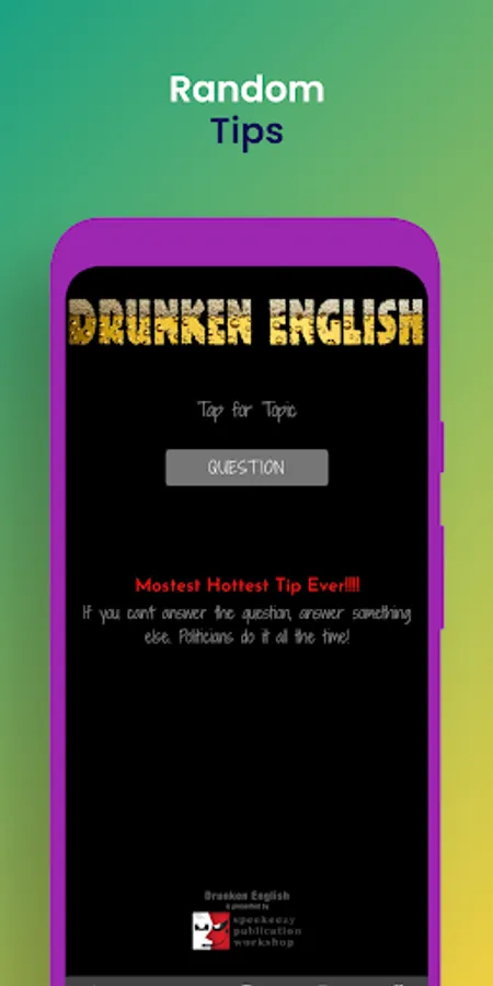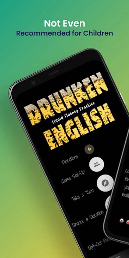 The content of Drunken English is risqué at times, the kinds of topics young adults sometimes seem preoccupied with, but students always have the option of opting out of answering, choosing a random penalty instead. Drunken English is not recommended for teens 16 or younger.