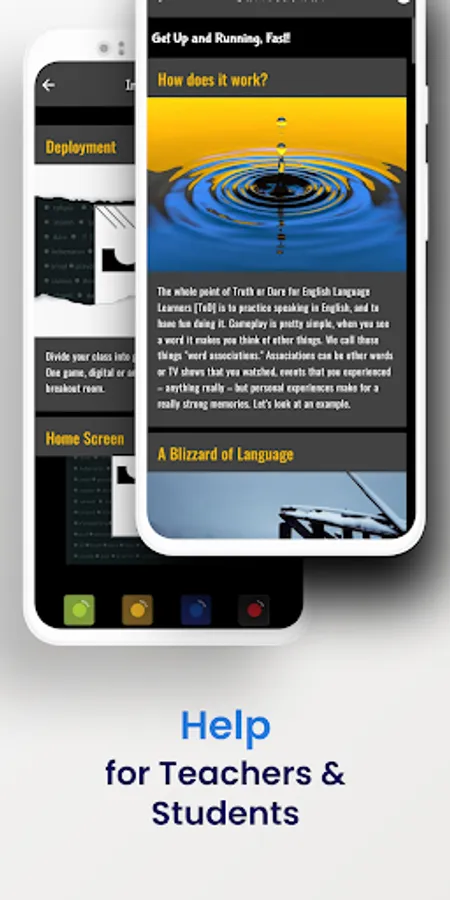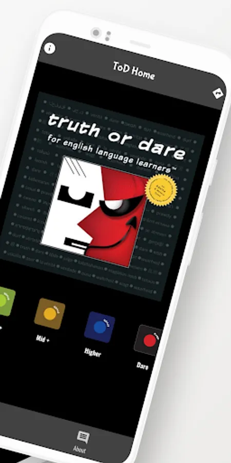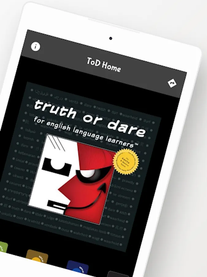 ToD will challenge and entertain adult and teen learners, from false beginner to advanced level. From 2 to 6 learners can enjoy gameplay with a single app. Five players is ideal, offering participants a good balance between being on the spot answering questions and the more comfortable role of participating from the sidelines.