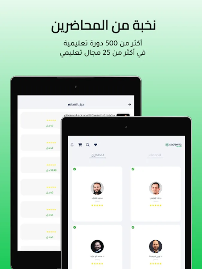 Training content is also available on the application in the form of recorded and direct videos from the lecturers, where the application enables you to watch the training courses in high quality, with the availability of lectures in the form of PDF files, also the student can view the content of the training courses from more than one device at the same time using the application, in addition To the student to receive support within the application around the clock