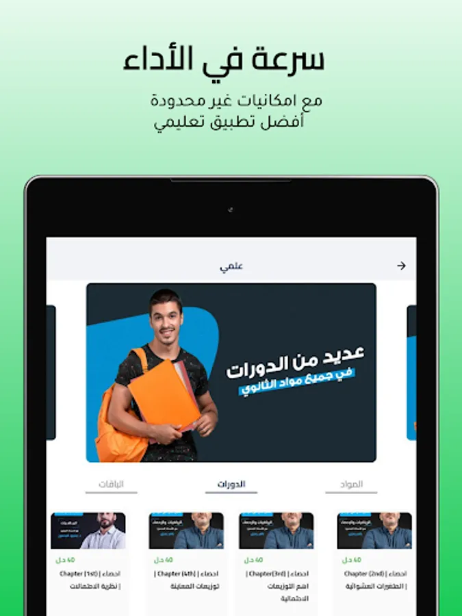 One of the most important advantages of the application is the ease of opening a new account for any user and the ability to choose the appropriate academic level and specialization for him, so that the student can find all subjects in one place. The user can also browse the application without the need to create a user account.