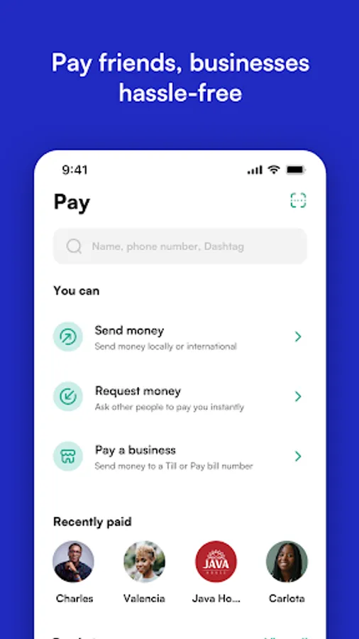 Dash App simplifies your money movement and allows you to send, receive, spend and save, all in a single app, with full transparency and security. It works seamlessly with your Mobile Money account, card and bank account. Dash is currently in Ghana 🇬ðŸ‡, Kenya 🇰🇪, and Nigeria 🇳🇬. Dash will be launching in South Africa 🇿🇦, and Tanzania 🇹🇿 soon.
