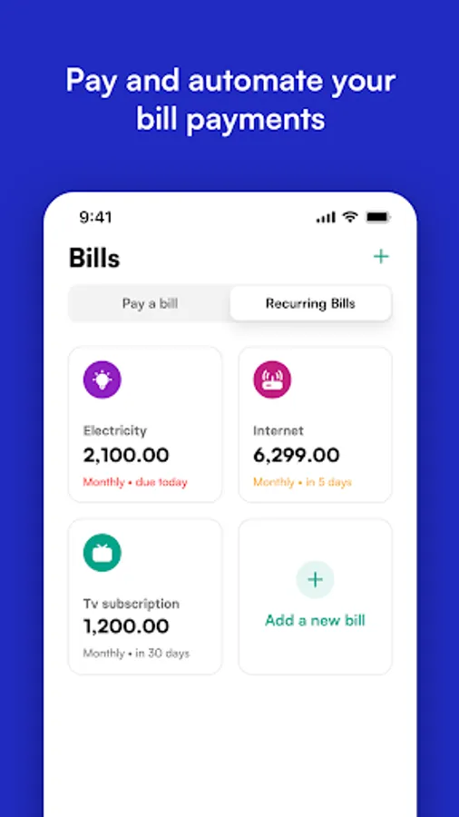Dash App allows you to pay, automate and split bills with friends. You can buy data bundles, airtime, pay for your Surfline, Vodafone Broadband, DStv, GOtv, Startimes, Busy Internet, MTN Fibre, ECG Postpaid and Water Bills in Ghana. In Kenya, you can pay Zuku, KPLC Postpaid & Tokens, DStv, GOtv, StarTimes, Safaricom Home and Nairobi Water bills. You can even automate these bills, we will notify you 5 days before the bills are due.