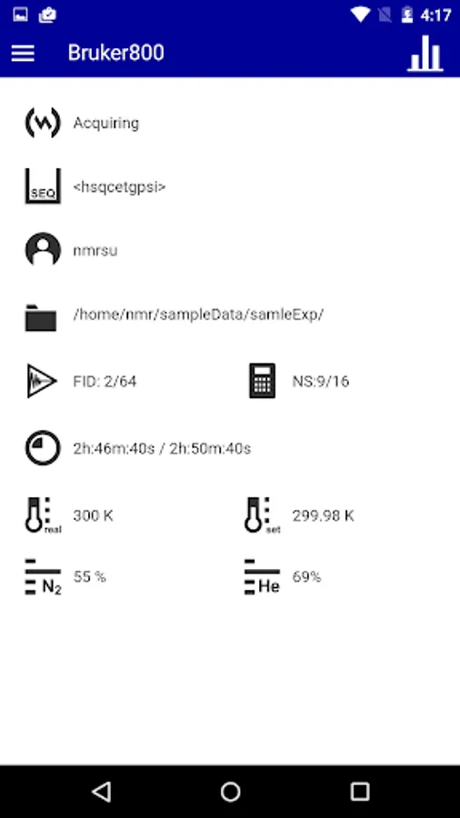 Statusino allows you to monitor NMR spectrometers using smartphone. It shows current status of acquisition, what pulse sequence is running and time to end the experiment...