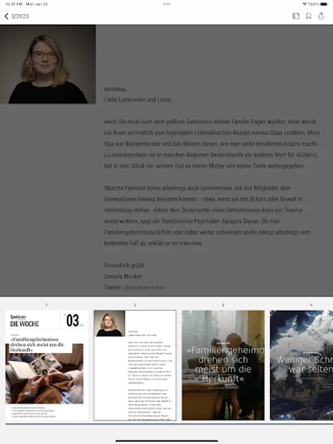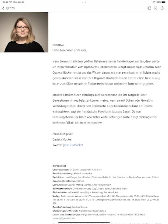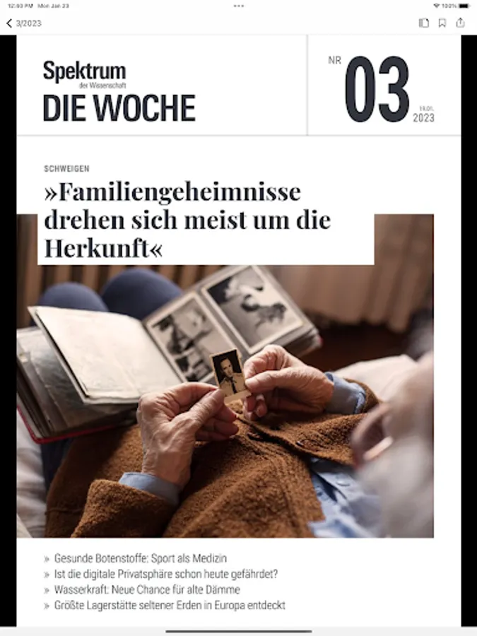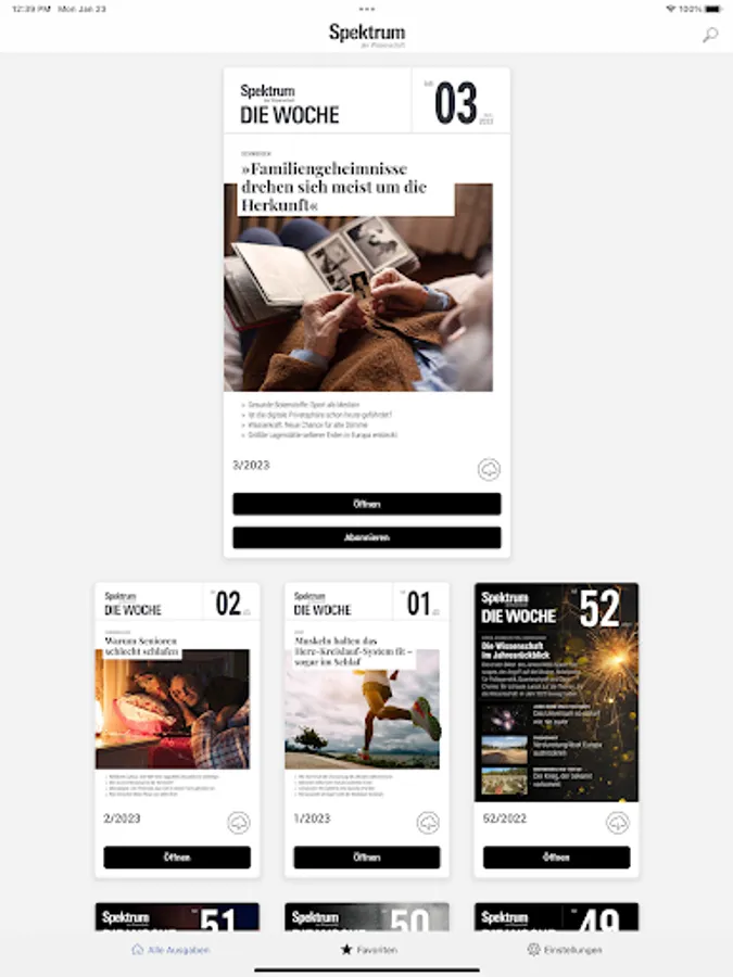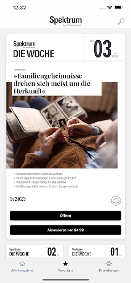 You can buy the app editions of "Spektrum - Die Woche" as a single edition for 1.99 euros or obtain a subscription.