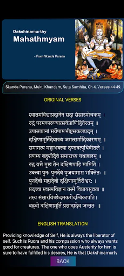 • Mahathmyam: A scriptural reference from Purana and Shaiva Aagama of each and every pooja conducted in the temple has been provided. This scriptural reference is provided such that the original Sanskrit verses is followed by its English translation.