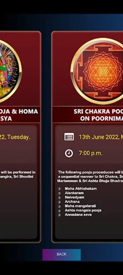 • Seva: Contains a list of seva’s that can be offered by the devotees.