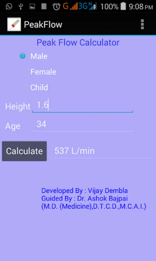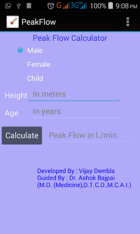 Disclaimer : This application is just for calculation of PEFR for further details please consult your doctor.