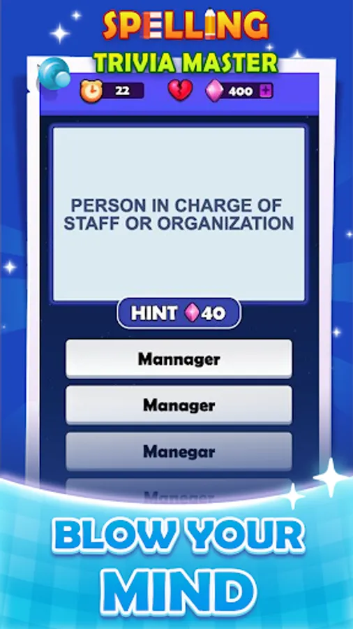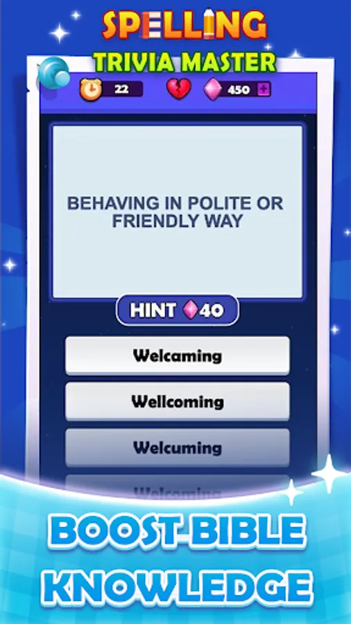 Welcome to the world of Spelling Trivia Master. Some words seem to be easy but people hesitate when spelling them. These pesky words always cause us trouble. Spelling Master is a tricky spelling quiz game that will put your knowledge to the test.