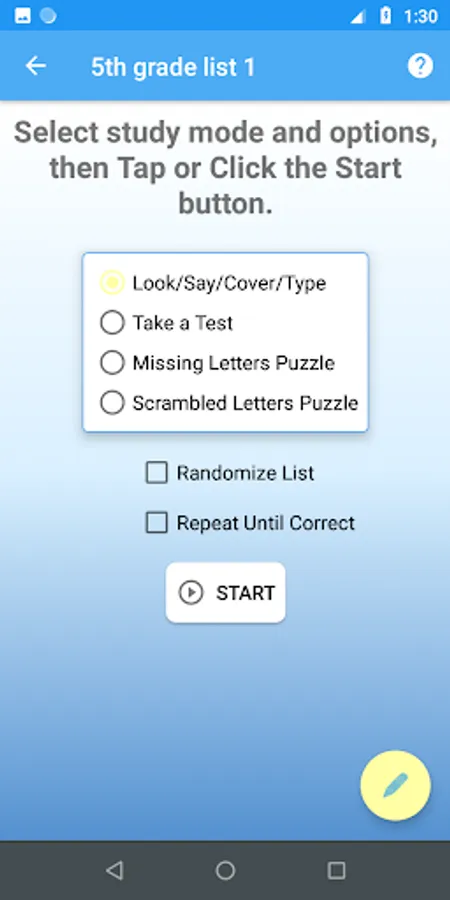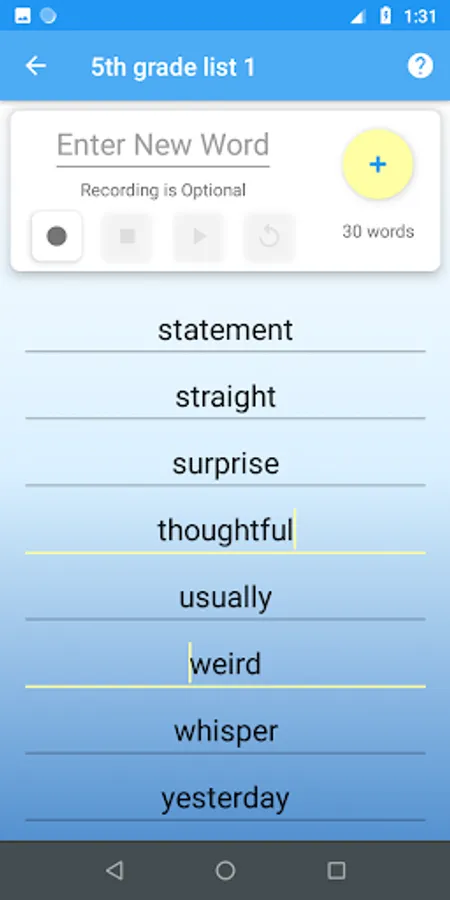 Spelling Test Practice allows you to create, record, and save a spelling list so that you can practice each day for a spelling test. Spelling lists are saved to your device as .sp7 files. You enter a spelling word and record its pronunciation so that when you take a test, you hear the recorded word. Spell can also use your device to speak the word through TTS (text to speech). You can view reports of your grades and misspelled words. Spell is great for Junior High and High School students.