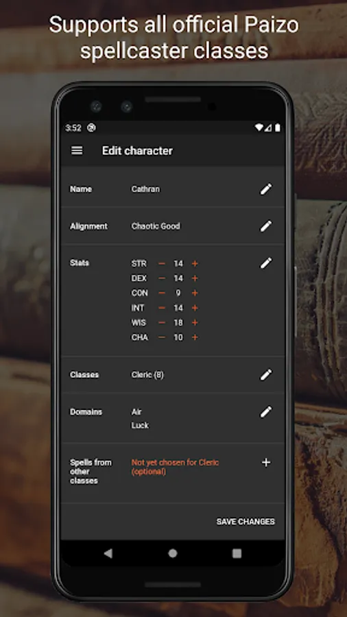 - Try every official Paizo caster classes (including core, base, hybrid, prestige and unchained caster classes).