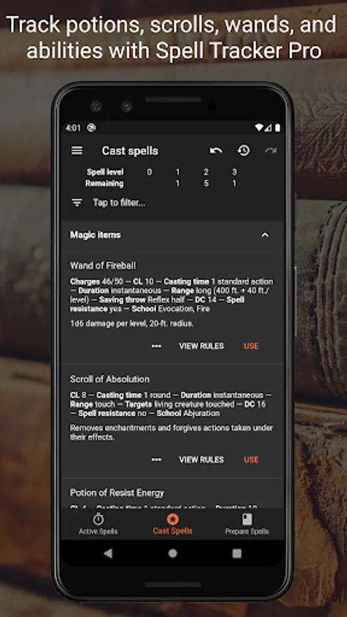 Being a spellcaster can be complicated. Don't make it harder with pen and paper or spreadsheets. Use an app that takes care of everything for you. Enjoy the game instead of doing admin.